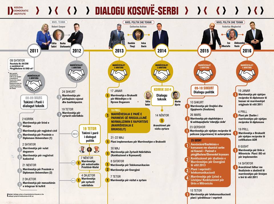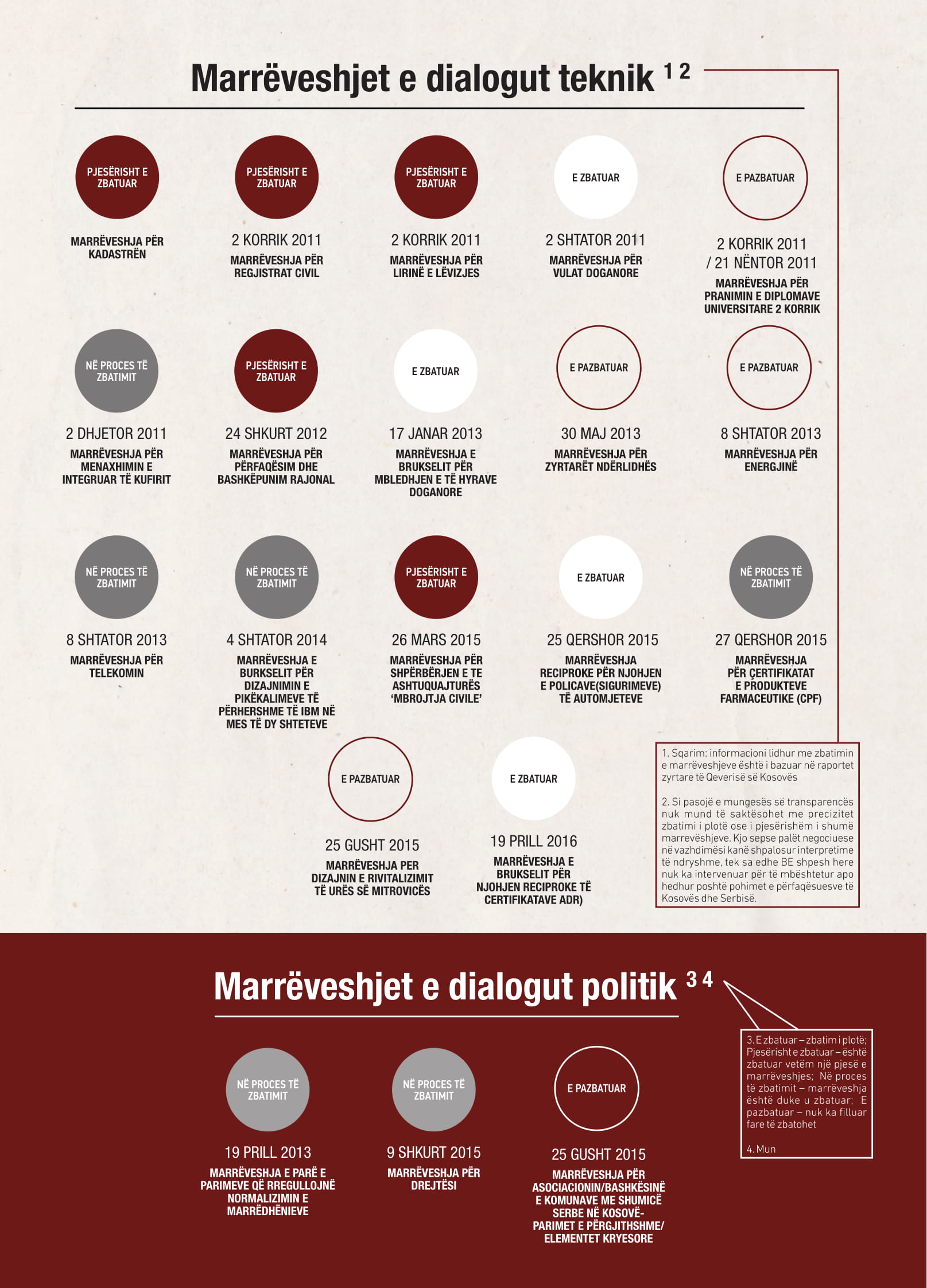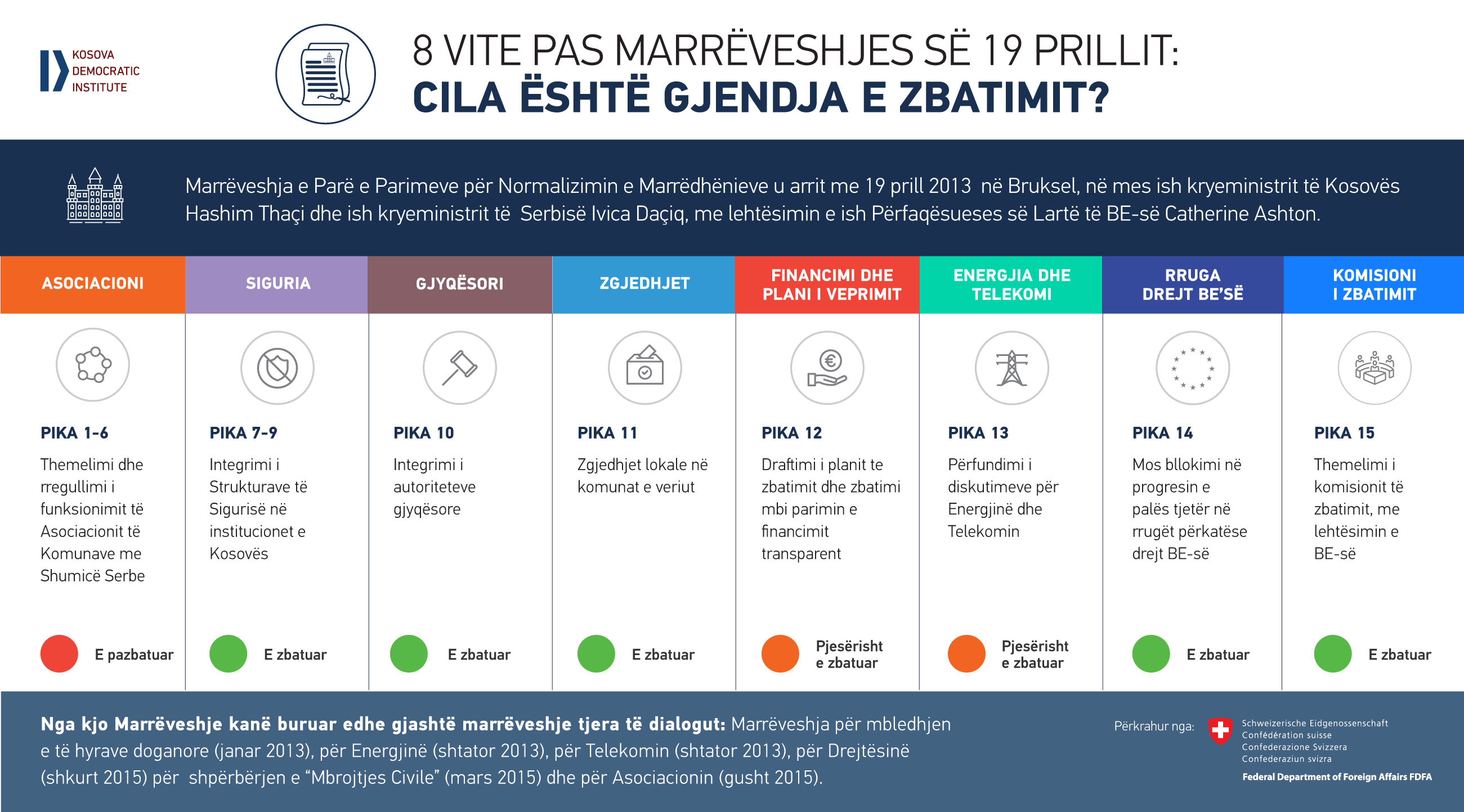 Infografika e mëposhtme në lidhje me zbatimin e marrëveshjeve të arritura në kuadër të dialogut Kosovë-Serbi
