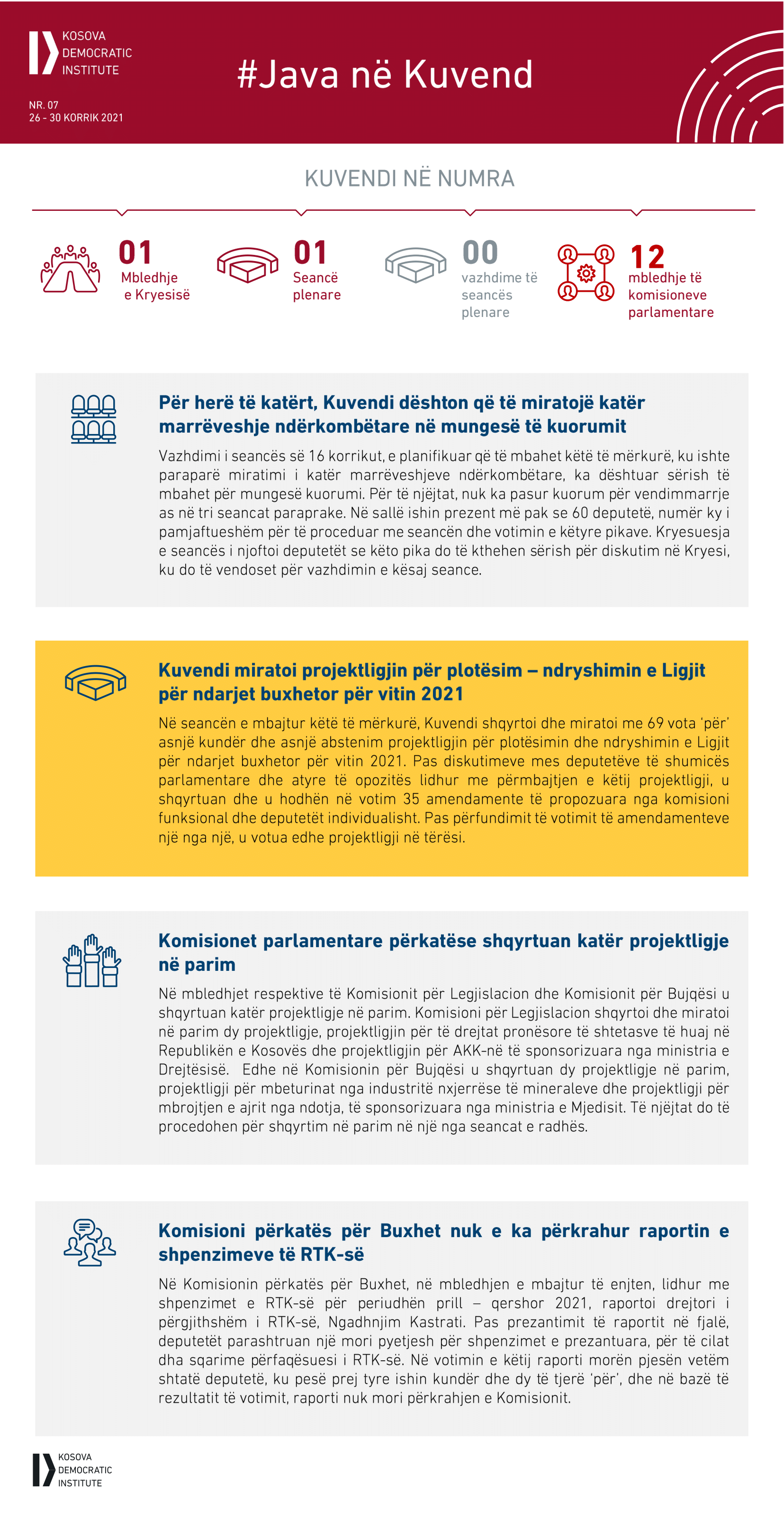 Performanca e Kuvendit të Kosovës gjatë sesionit pranveror 15 janar – 31 korrik 2024