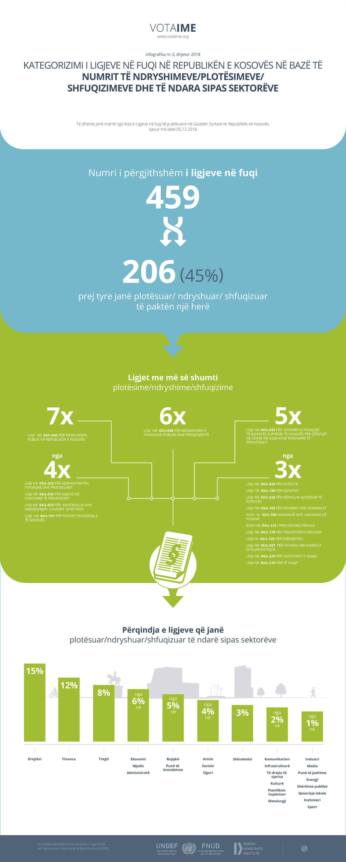 Kategorizimi i ligjeve në fuqi në Republikën e Kosovës në bazë të numrit të ndryshimeve/plotësimeve/ shfuqizimeve